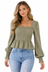 Olive smocked peplum top by Altar&