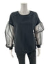 INC International Concepts Sheer Balloon Sleeve Sweater Top Black Size M