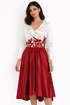 White and red embroidered pre-owned midi dress, A-line fit and flare style, size 12, high-low evening wear gown.