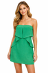BCBG Strapless Ruffle Cascade Mini Dress Emerald Green Size 2