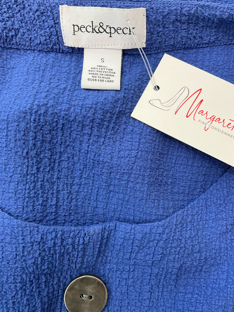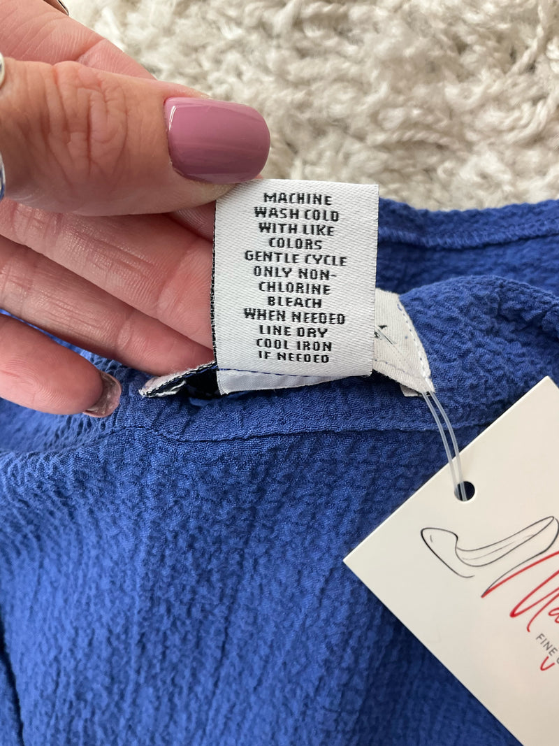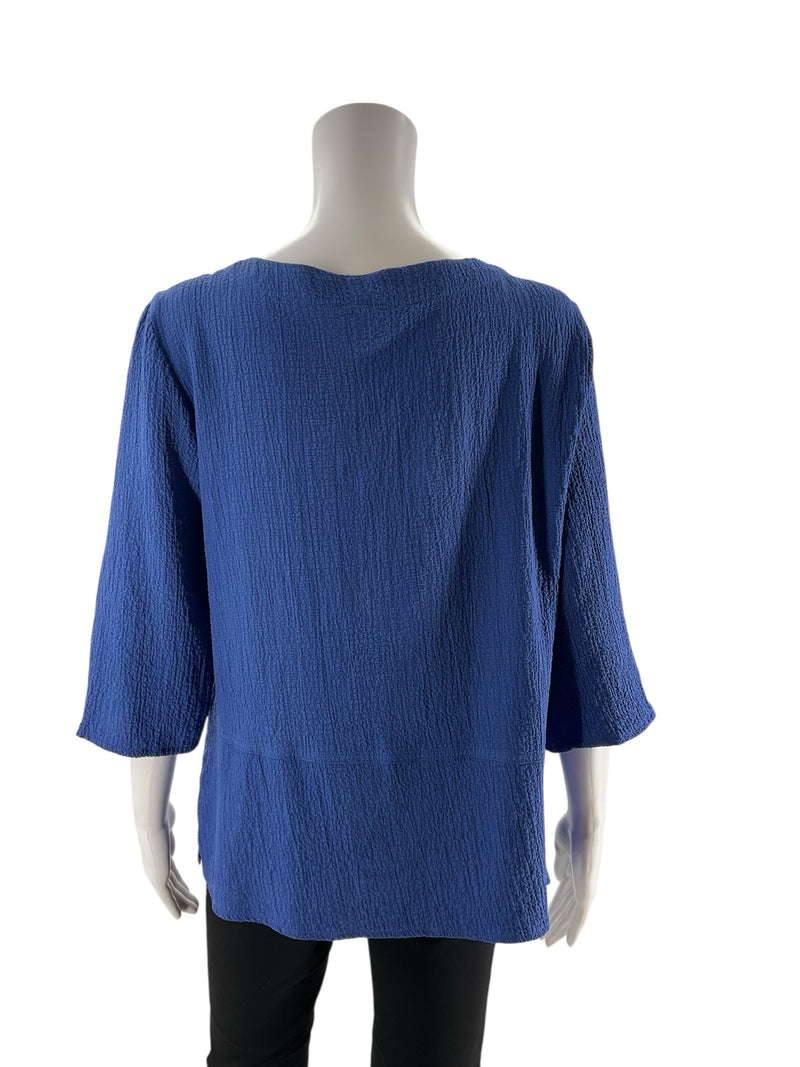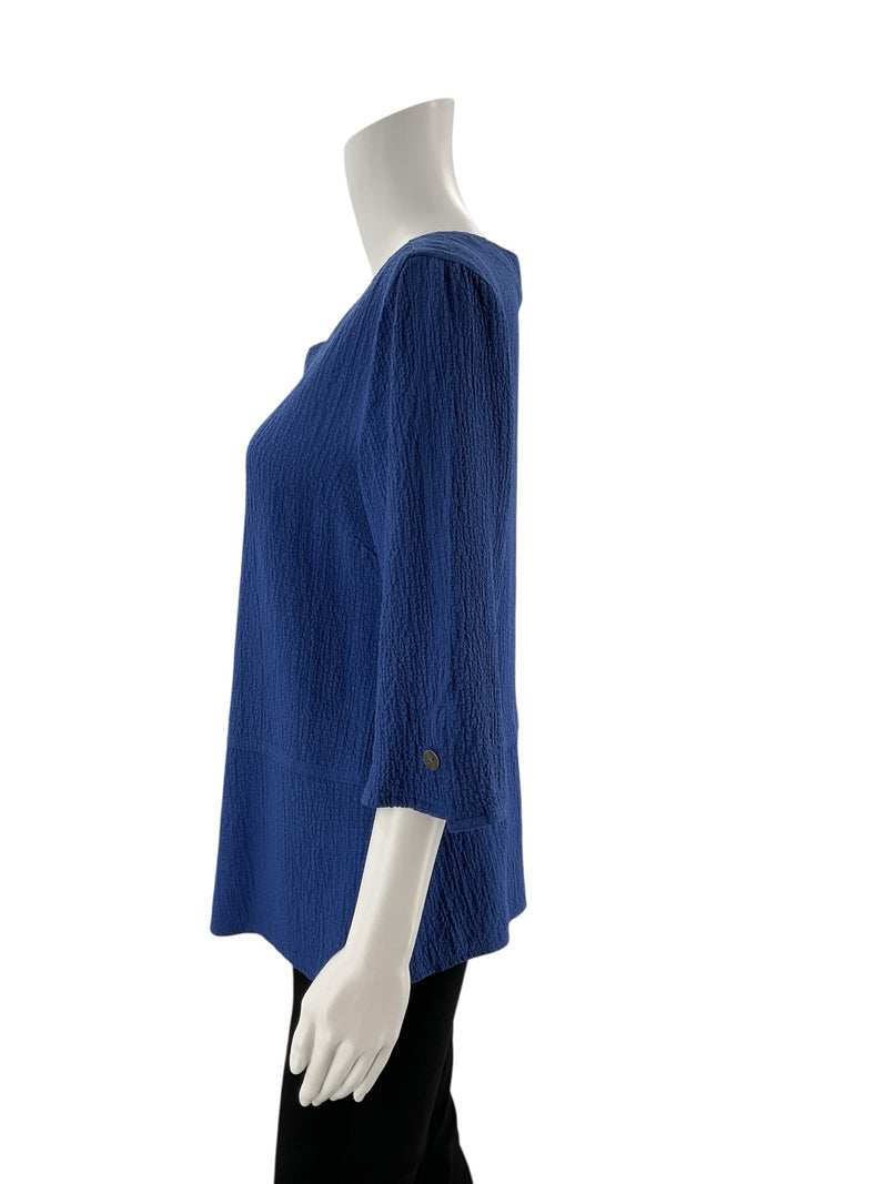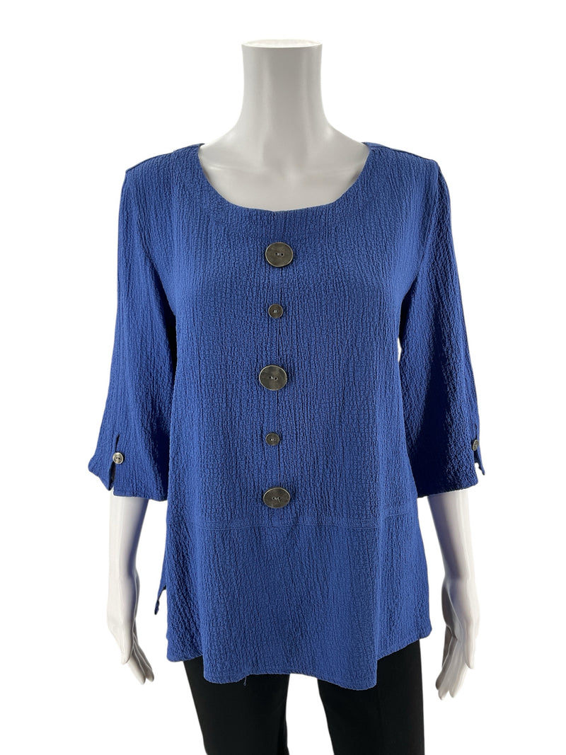 Peck & Peck Blue Textured 3/4 Sleeve Button Front Tunic Top Size Small
